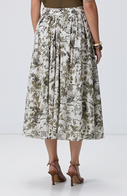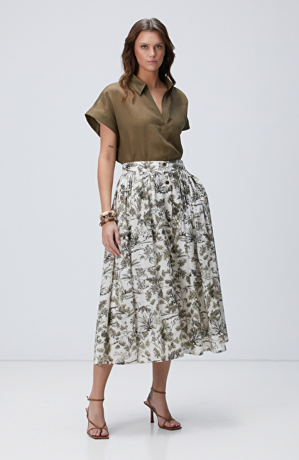 Haki Desenli Midi Etek