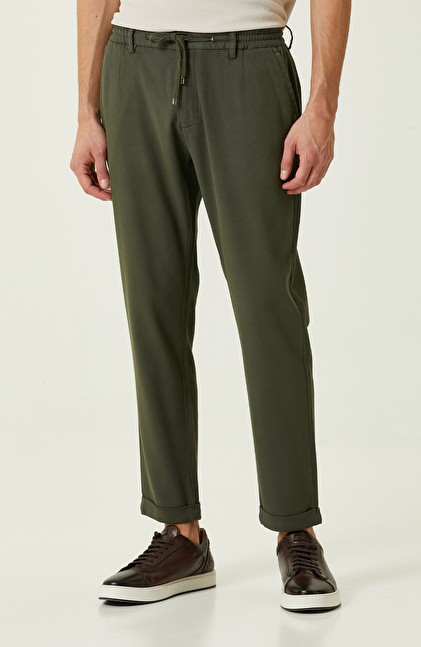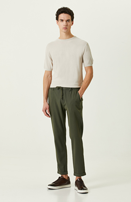 Network Smart Casual koleksiyonu içerisinde yer alan ve özgün tasarımıyla dikkatleri üzerine çekmeyi başaran Haki Duble Paça Jogger Fit Pantolon, tarzınızı en iyi şekilde yansıtmanıza yardımcı olur. Jogger fit pantolon tasarımında yer verilen yan cepler ve duble paçalar, modern ve dinamik bir stil ortaya koyar. Modern ve estetik bir görünüm oluşturmanın yanı sıra konfor beklentilerine de etkili bir şekilde yanıt veren jogger fit pantolon, hareket alanınızın kısıtlanmasına izin vermez. Gün boyu keyifli ve rahat bir deneyim elde etmenize olanak tanıyan Haki Duble Paça Jogger Fit Pantolon modelini tişört, sweat, kazak veya gömlek seçenekleriyle kombinleyerek göz alıcı bir stil ortaya koyabilirsiniz.