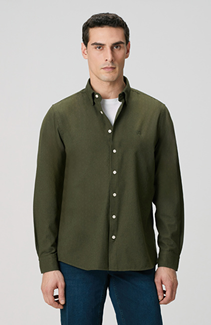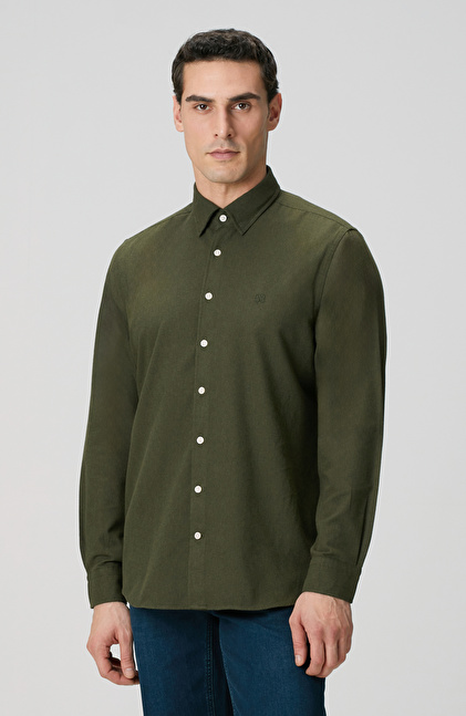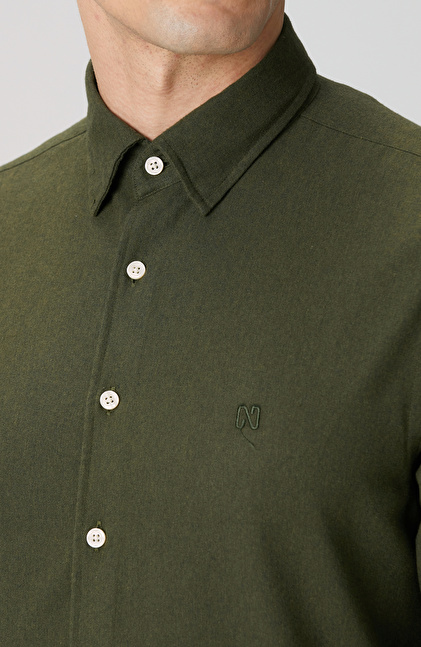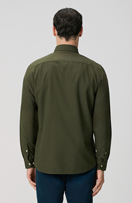 Slim Fit; Alttan Britli Yaka; Flanel Cotton Gömlek; Uzun Kol; Cepsiz