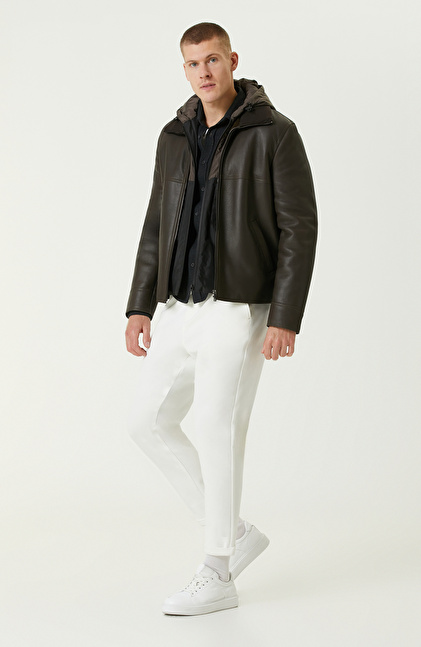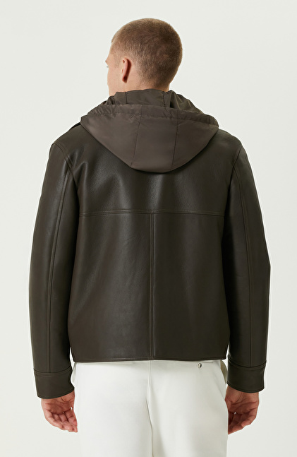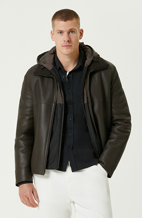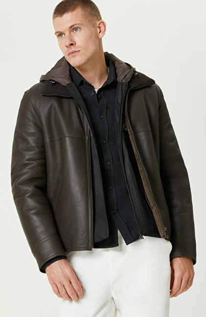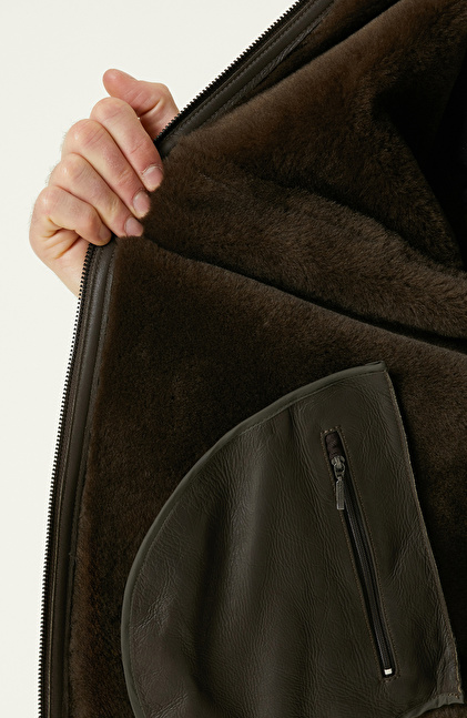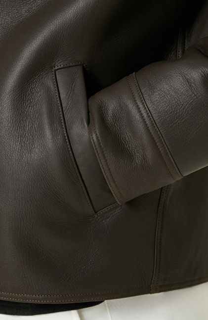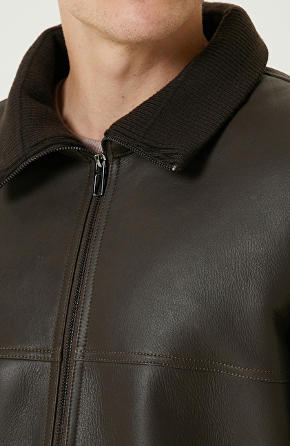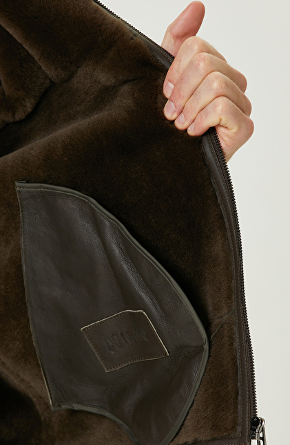 Haki İçi Kürklü Deri Mont