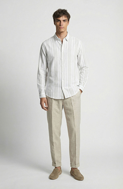 Haki Jakarlı Çizgili Gömlek