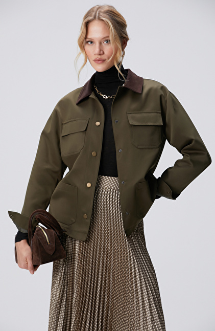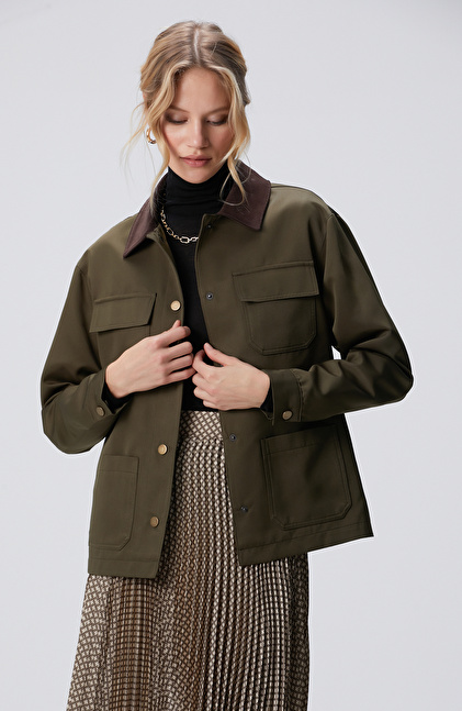Haki Kadife Garnili Mont