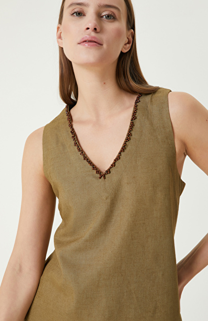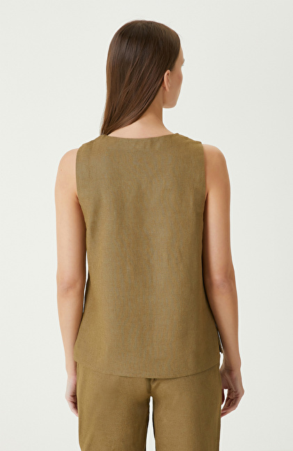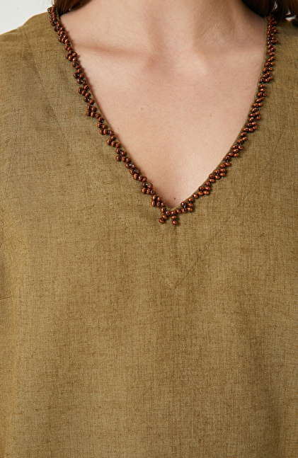 Haki Kadın Keten Mix Bluz