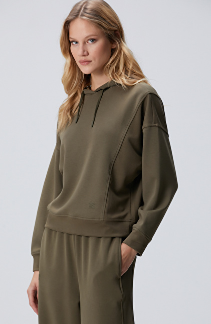 Haki Kapüşonlu Sweatshirt