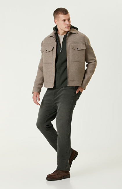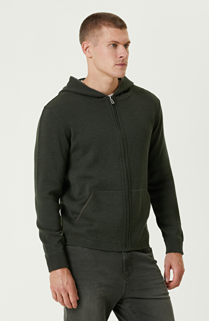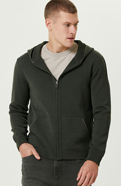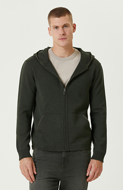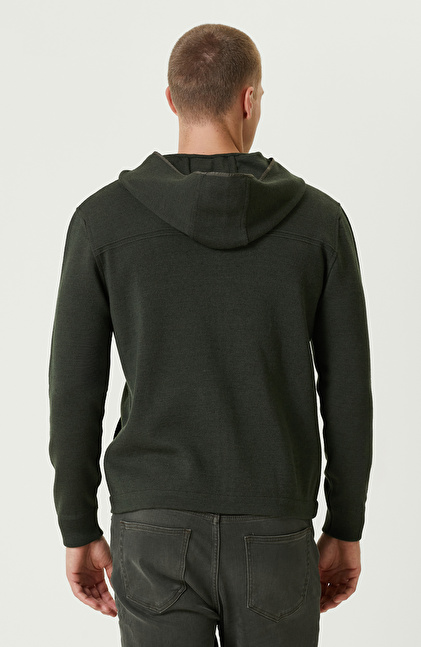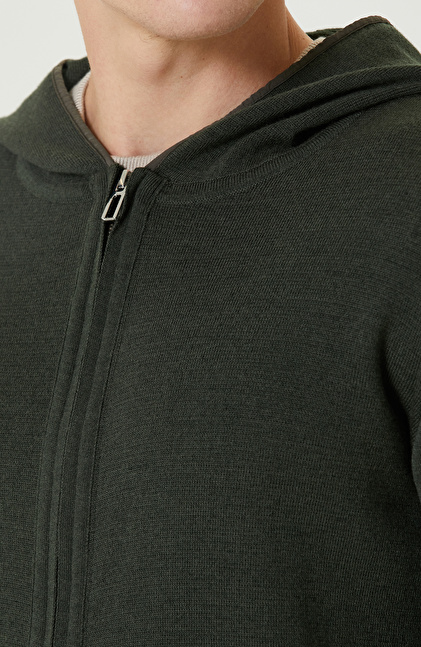 Haki Kapüşonluyün Karışımlı Triko Mont