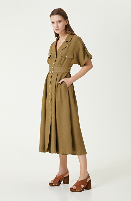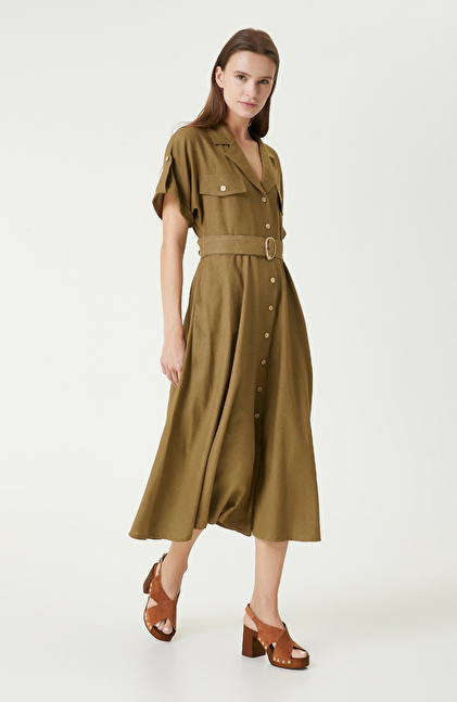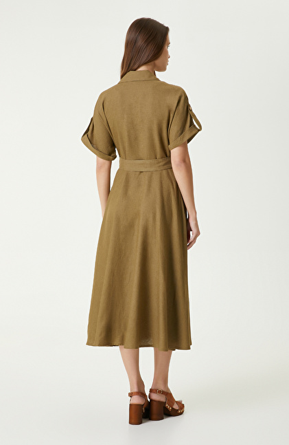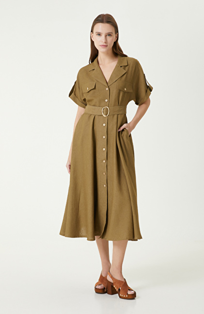 Haki Keten Elbise