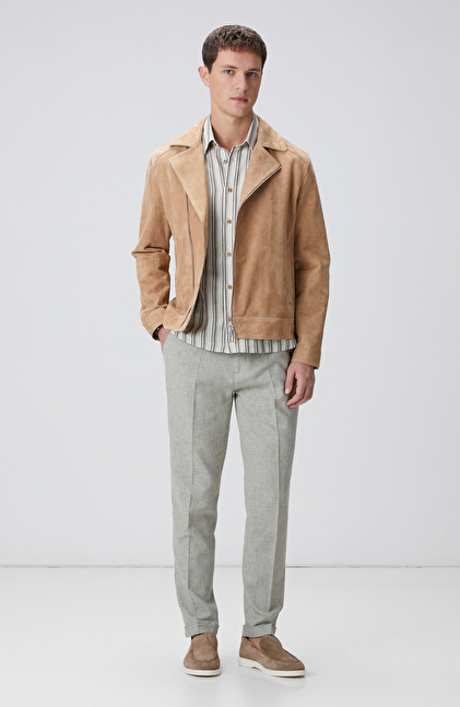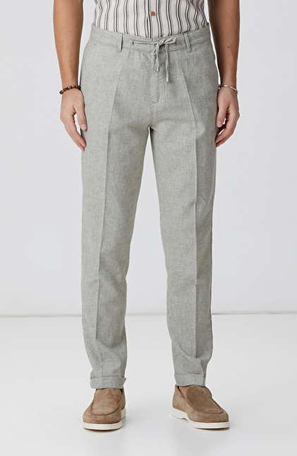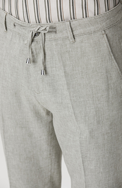 Haki Keten Karışımlı Pantolon