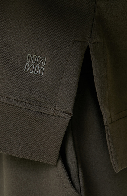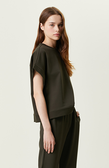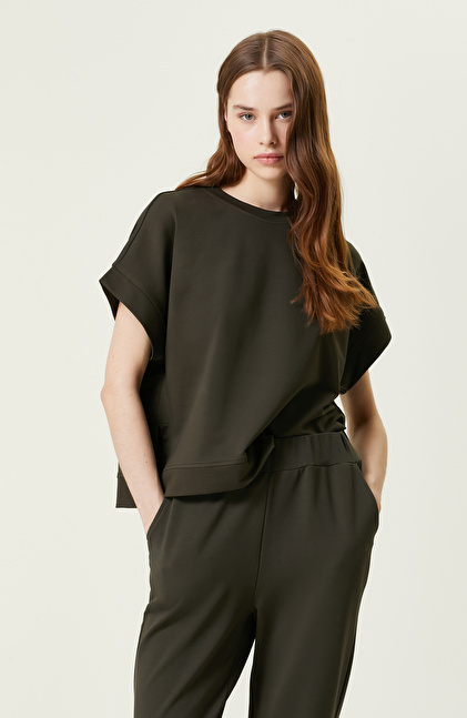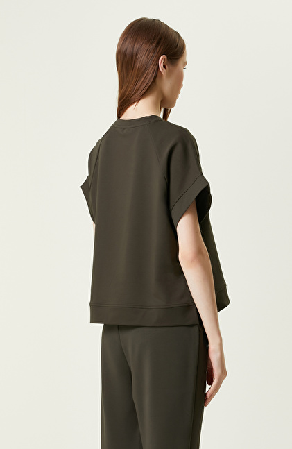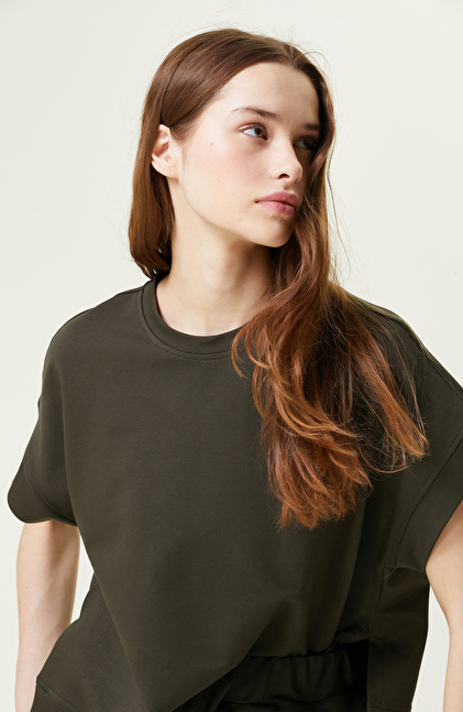 Haki Kısa Kollu Bisiklet Yaka Sweatshirt