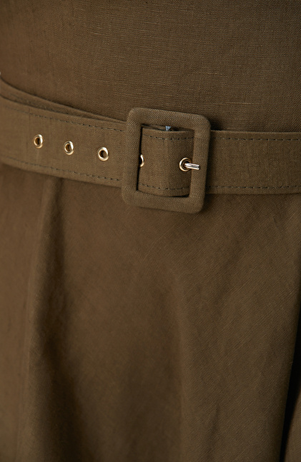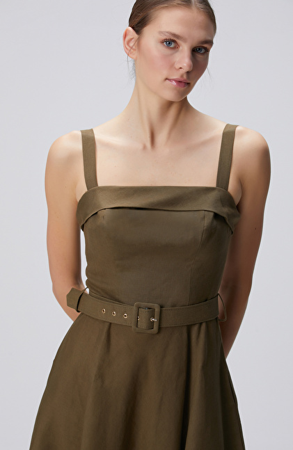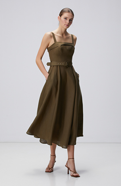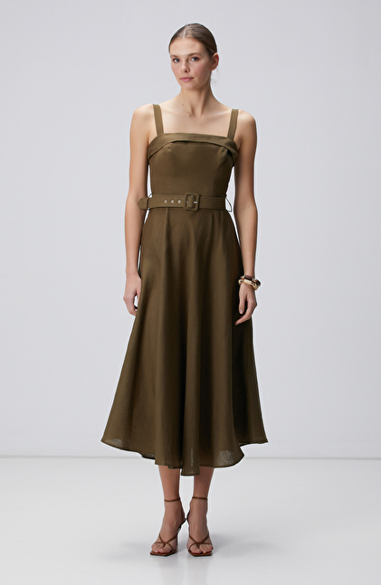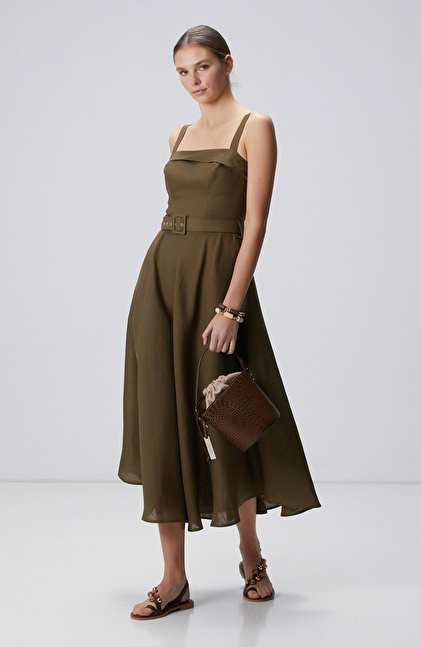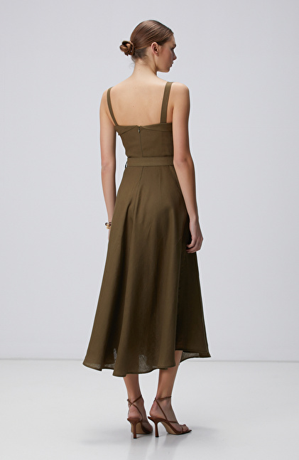 Haki Midi Keten Elbise