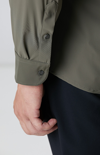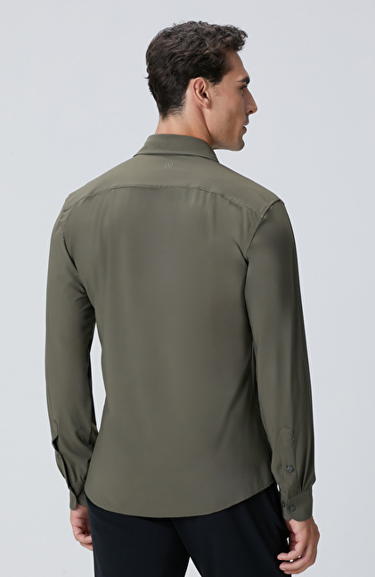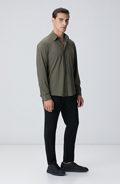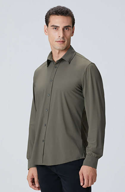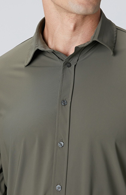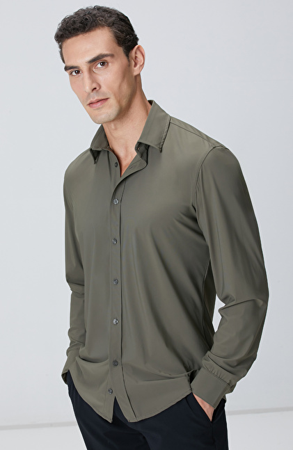 Slim Fit; Gömlek Yaka; Uzun Kollu; Örme Gömlek
