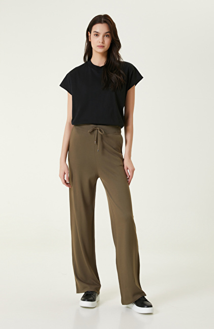 Basic Fit; Lastikli Orta Bel; Bol Paça; Triko Pantolon