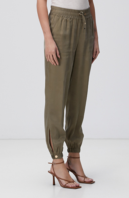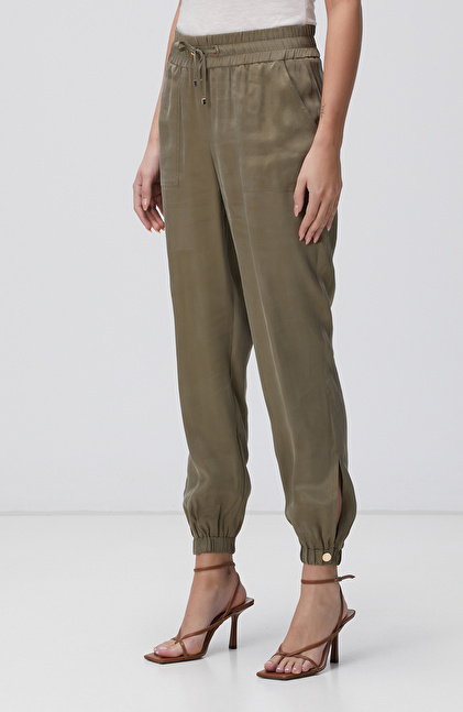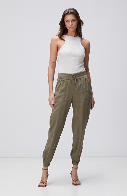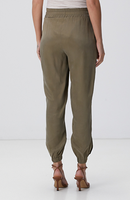 Regular Fit; Yüksek Bel; Lastik Paça; Dokuma Cupro Pantolon; Aplike Cepli