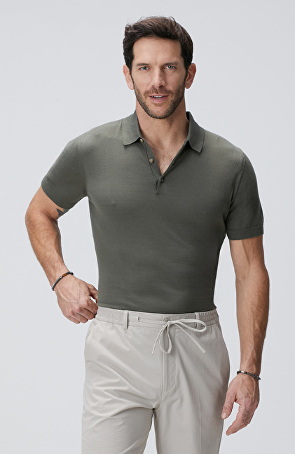 NETWORK Smart Casual Haki Polo Yaka Triko Kazak