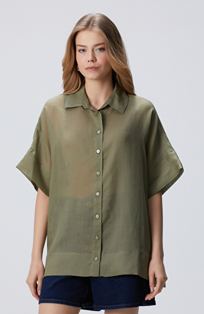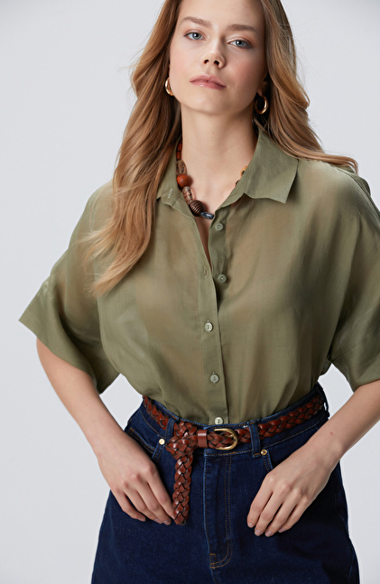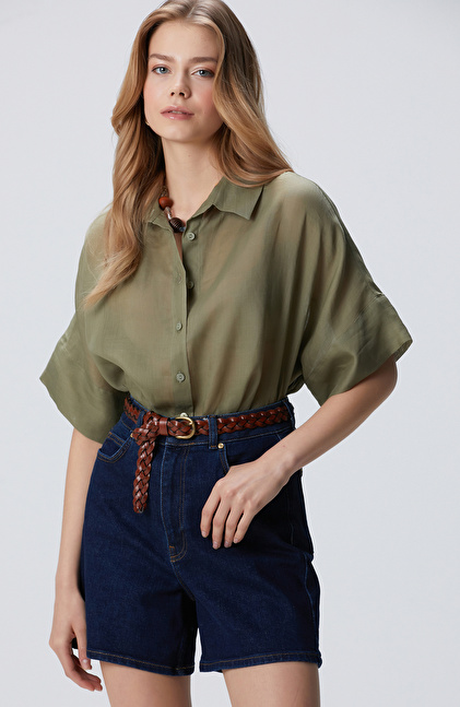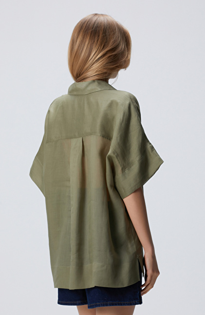 Regular fit; Hakim yaka; kısa kol; rami gömlek