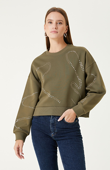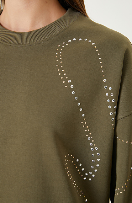 Haki Taş Baskılı SweaTshirt