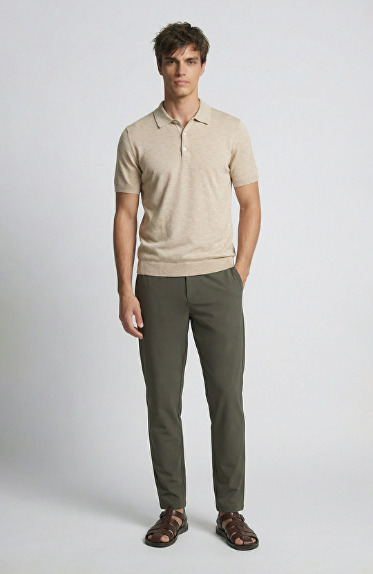 Slim Fit; Normal Bel; Düz Paça; Teknik Dokuma Pantolon; Yan Cepli