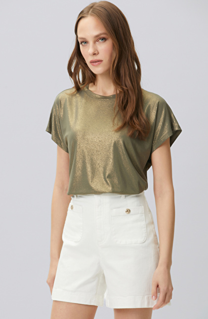 Haki Varak Baskılı T-shirt