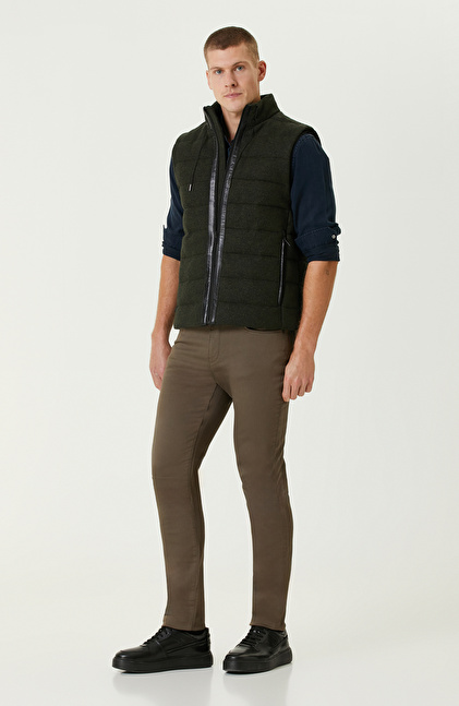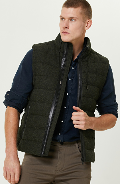 NETWORK Casual Haki Yün Karışımlı Puffer Casual Yelek
