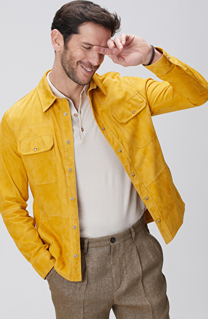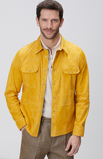 Slim Fit; Gömlek Yaka; Uzun Kol; Deri Mont; Düz Renk; Yan Cepli;Hayvansal Kökenli Tekstil Dışı Parçalar İçerir.