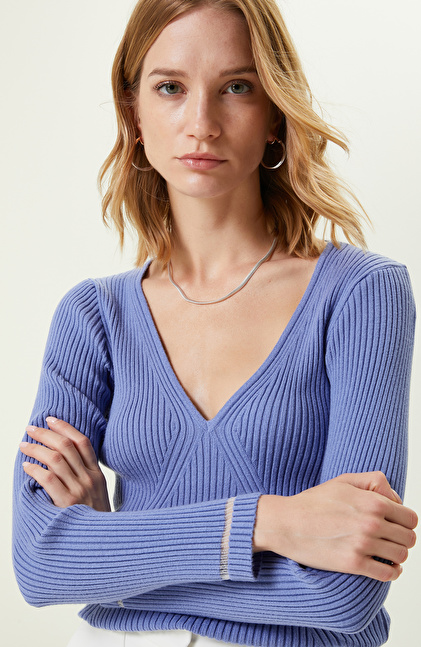 NetWork’ün çağdaş moda çizgisi doğrultusunda tasarladığı eşsiz parça Havacı Mavi V Yaka Triko Kazak, sonbahar/kış sezonunda gardıropları süsler. Entelektüel ve stil sahibi kadınların tercihi olan parça, uzun kol ve V yaka detayları ile tasarlanır. Viskon karışımlı triko kumaş ile hazırlanan tasarım, NetWork Smart Casual koleksiyonuna dahildir. Hem ofis hem de günlük aktiviteler için kullanılabilen kazağın selofanlı yapısı şıklığını tamamlar. Slim fit kalıplı parça, vücudunuza kusursuz bir şekilde oturur. Uzun kol V yaka selofanlı trikoyu; beyaz pantolon, beyaz blazer ceket, beyaz deri kol çantası ve açık renkli bir stiletto ile kombinleyerek şık ofis görünümünüzü oluşturabilirsiniz.