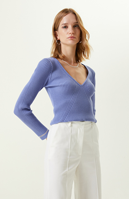 Havacı Mavi V Yaka Triko Kazak