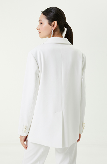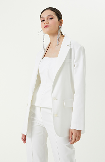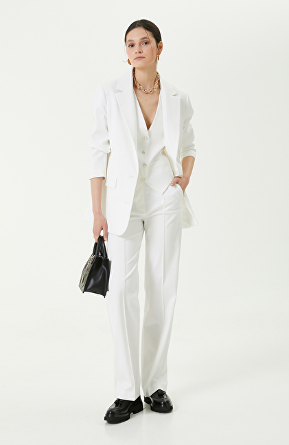 Feminen stilin vazgeçilmezi olan İki Düğmeli Ekru Blazer Ceket, iddialı bir görünüm elde etmeniz için idealdir. Özel günlerde ve ofis ortamında iddialı kombinler oluştururken kullanabileceğiniz tasarıma sahiptir. Kaliteli kumaşı ise üzerinizde yüksek bir duruş sergileyerek tarzınızı öne çıkarır. Ön kısmındaki 2 düğme detayı ve kollarındaki düğmeler, tasarıma sofistike bir dokunuş yapar. Ekru rengi ise cesur ve ciddi bir stil oluşturmanızı sağlar. NetWork’ün zamansız ve lüks moda anlayışı ile konforu bir araya getirir. Ekru keten pantolon, ekru yelek, düz bir bluz ve açık topuklu ayakkabı ile kombinleyerek kusursuz bir uyum elde edebilirsiniz.