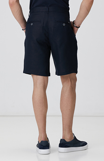 Slim Fit; Normal Bel; Keten Chino Şort; Düz Paça; Yan Cepli