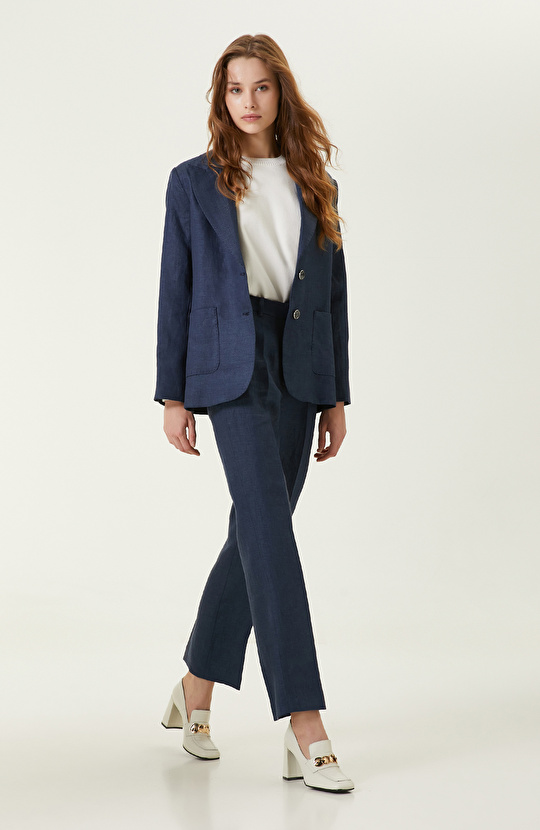 Stil sahibi kadınların modern şıklığını yansıtan İndigo Keten Pantolon, eşsiz rengi ile kış sezonunun beğeni toplayan parçaları arasında yer alır. Sade tasarımı ve zamansız boru paça kesimi ile her döneme uyum sağlar. Basic fit formu sayesinde rahat bir kullanım sunar. NetWork’ün akıllı moda anlayışı ile oluşturduğu Special koleksiyonuna ait yenilikçi ve yüksek performanslı parçalarından biridir. Üstün kaliteli lüks kumaşı ile kusursuz bir konfora sahiptir. Siz de bu iddialı pantolonu; ekru bisiklet yaka uzun kollu triko, indigo keten ceket, beyaz deri ayakkabı, bej çanta ve altın geometrik formlu pirinç küpe ile kombinleyebilirsiniz.