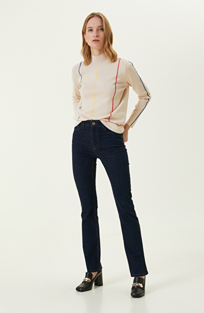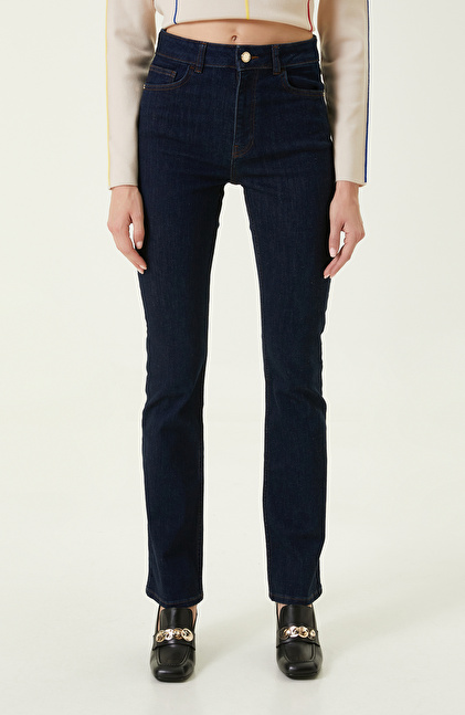 NetWork stilini benimseyen kadınların aktif ve modern stiline uyum sağlayan Indigo Mavi Yüksek Bel Pantolon, lüks bir tasarıma sahiptir. Bel kısmının arka tarafında bulunan NetWork etiketi, tasarıma havalı ve lüks bir dokunuş yaparak kombinlerinizi bir üst noktaya taşır. Casual koleksiyonunda yer alan bu parça, pamuklu kumaşı sayesinde konfor ve kaliteyi bir araya getirir. Yüksek bel olması sayesinde hareket etme konusunda özgürlük sunar. Gün içinde rahat ve şık kombinler oluşturmak için kullanabilirsiniz. İndigo mavi renkli bu pantolon ile bej triko kazak ve siyah topuklu loafer kombini yaparak feminen bir görünüm kazanabilirsiniz.
