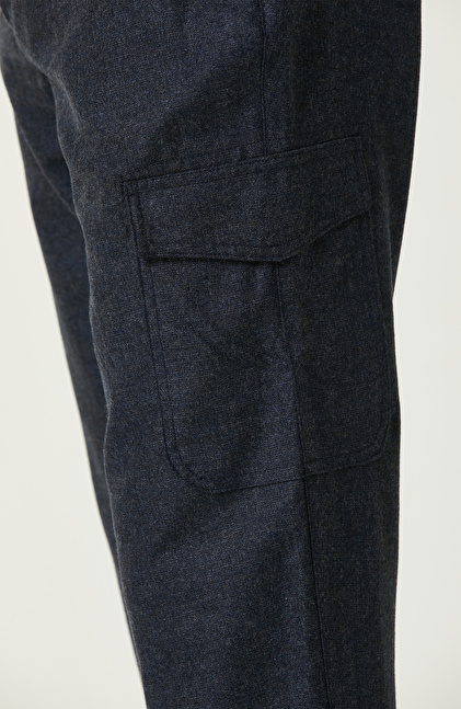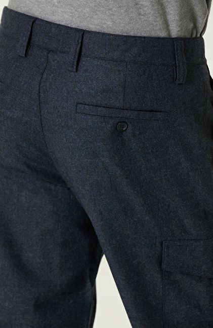 Slim Fit; Normal Bel; Düz Paça; Dokuma Yün Pantolon; Yan Cepli
