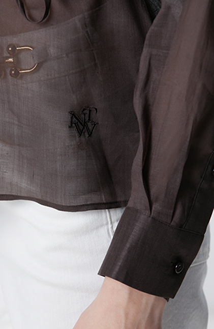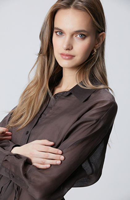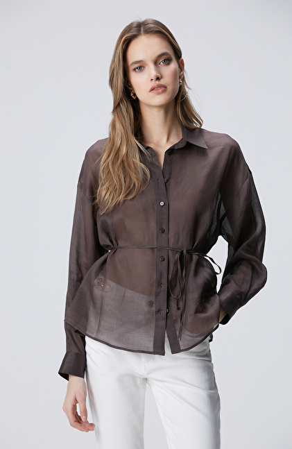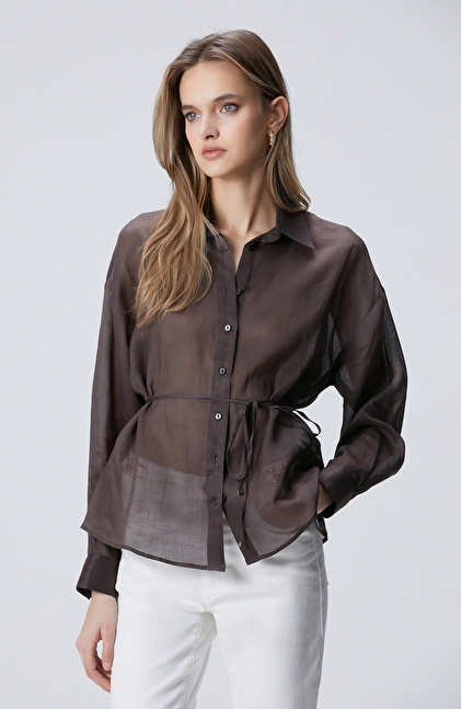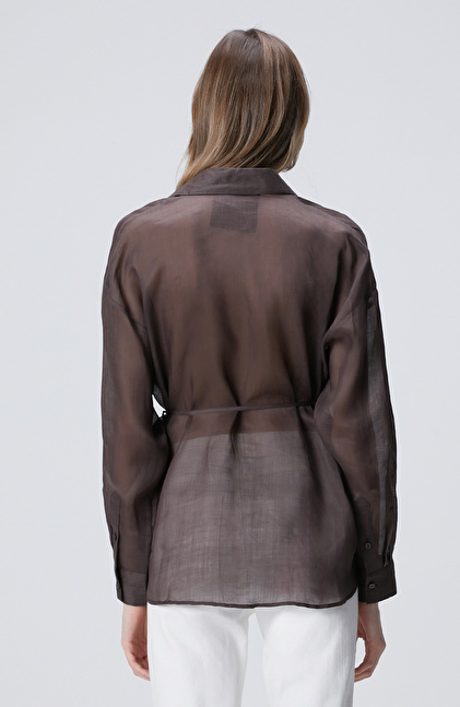 Kahverengi Beli Kuşaklı Rami Gömlek