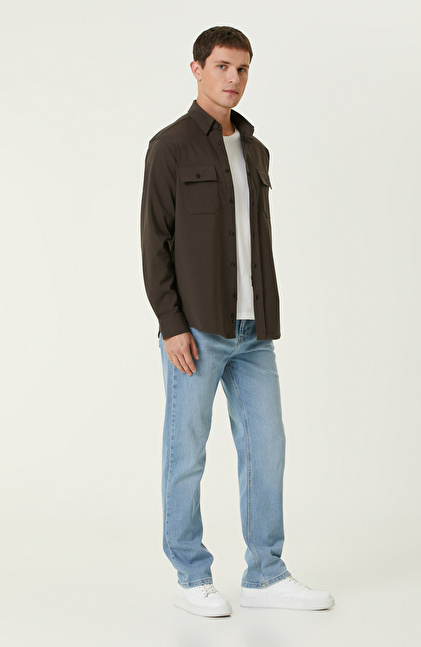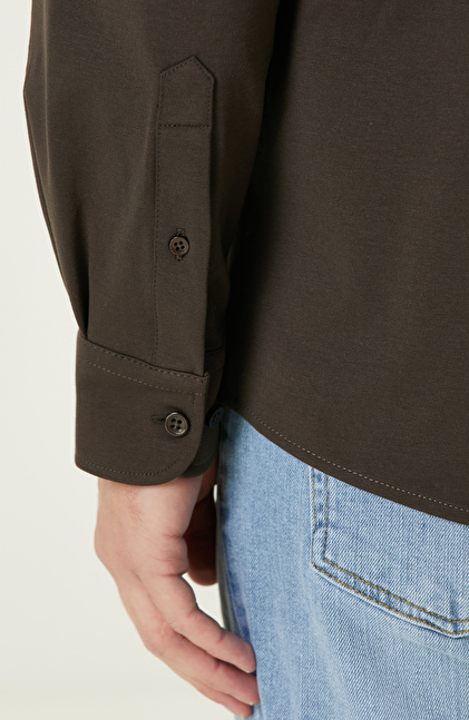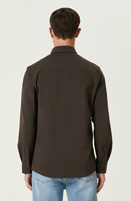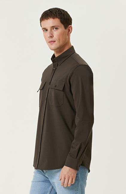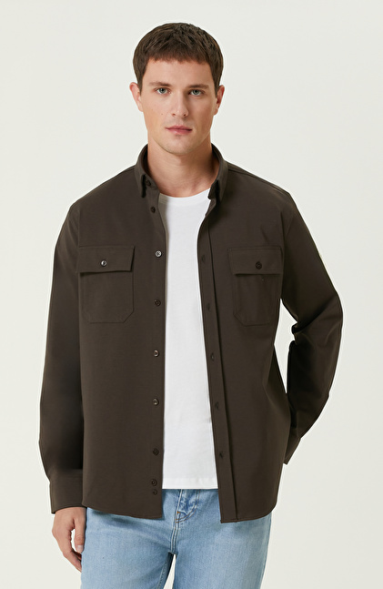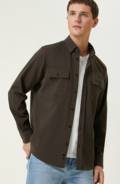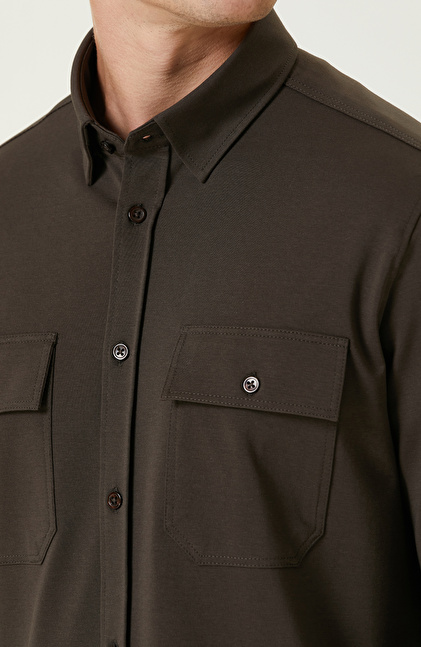 Kahverengi Çift Cepli Örme Gömlek