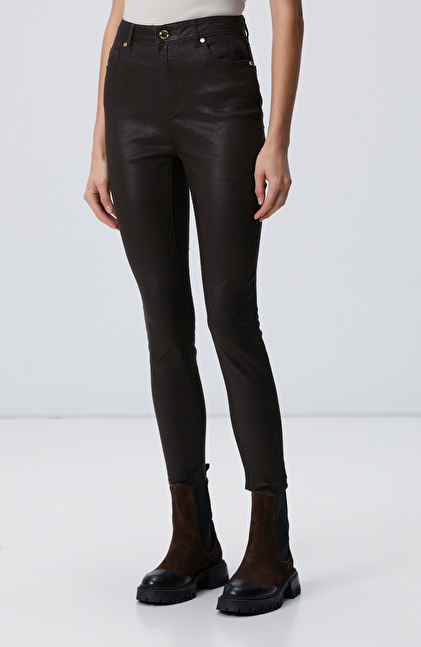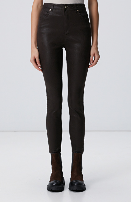 Kahverengi Desenli Baskı Kaplamalı Casual Pantolon