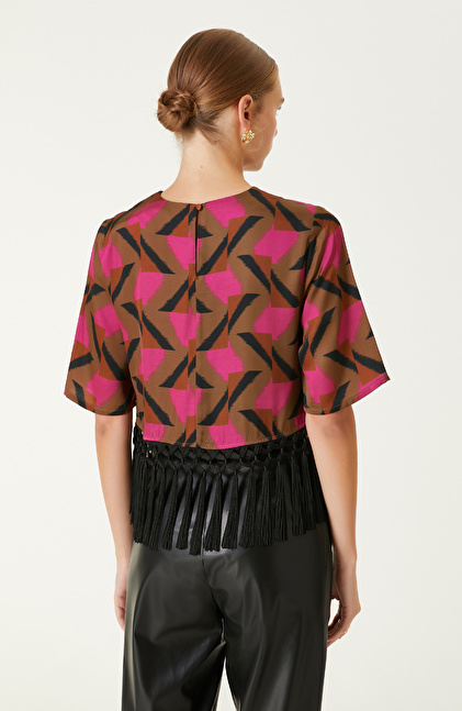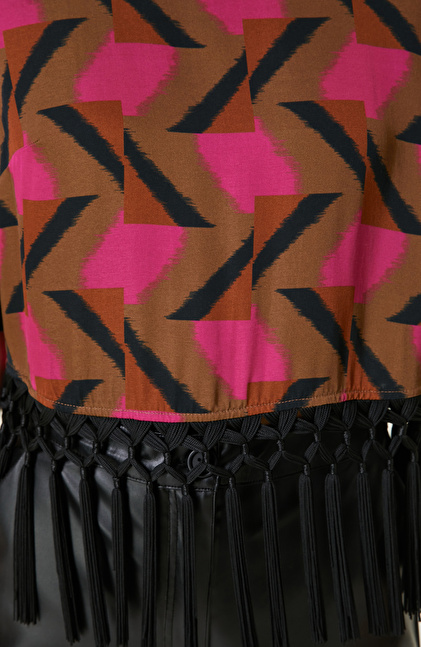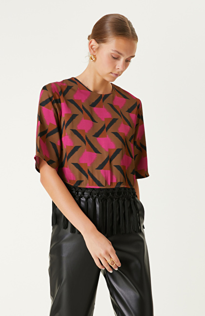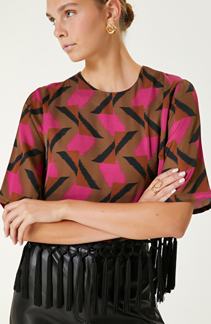 Kahverengi Desenli Bluz