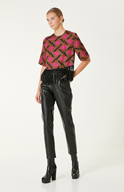 NetWork Smart Casual serisinde yer alan Kahverengi Desenli Bluz, detaylarla zenginleştirilmiş tasarımları tercih eden şehirli kadınların favorileri arasındadır. Kısa kol ve ceket yaka hazırlanan lüks tasarım, kış stilinizi yansıtırken gardırobunuzda mutlaka yer alması gereken bir parçadır. Etek ucu püskül detayları, modele hareketlilik katarak inovatif bir görünüm sergiler. Desenli yenilikçi stil, zamansız kombinlere imza atmanızı sağlar. Regular fit kalıbıyla konforu ve şıklığı bir arada tercih eden stil sahibi kadınlara hitap eder. Siz de bu ilgi çekici tasarımı siyah deri pantolon ve siyah deri bot ile tamamlayabilir, zarif bir kombin oluşturabilirsiniz.