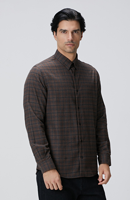 Kahverengi Ekose Desenli Gömlek