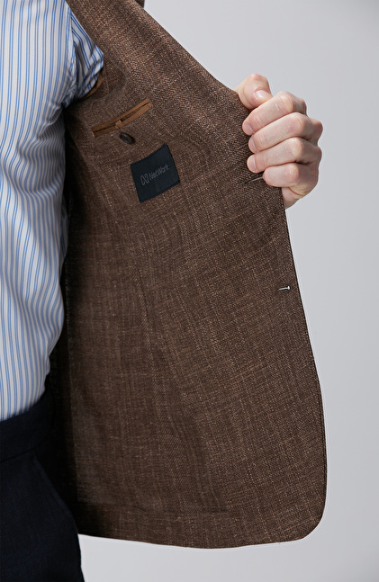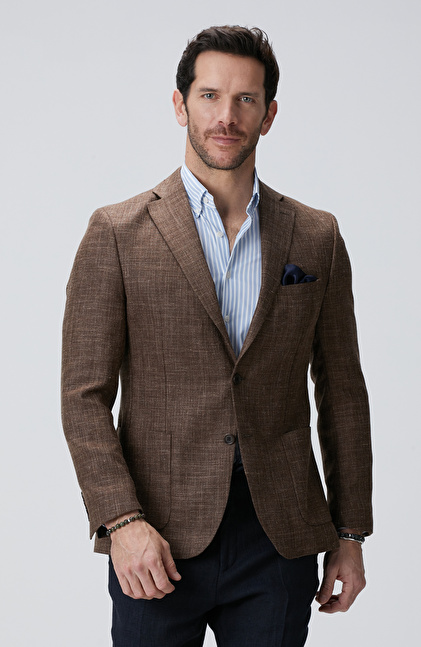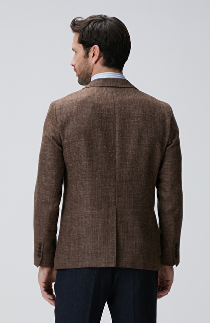 Kahverengi Ekose Desenli Yün İpek Karışımlı Ceket