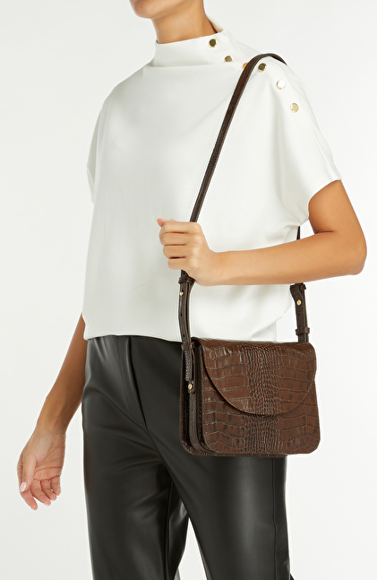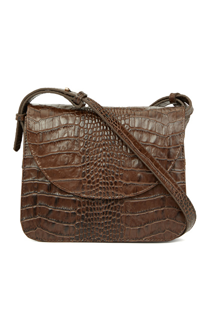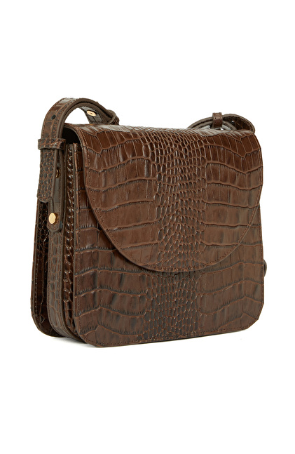 Kahverengi Kadın Çanta;Kroko Baskı Görünümlü; Omuz Çantası;Hayvansal Kökenli Tekstil Dışı Parçalar İçerir;23x18x6 cm ölçülerindedir.
