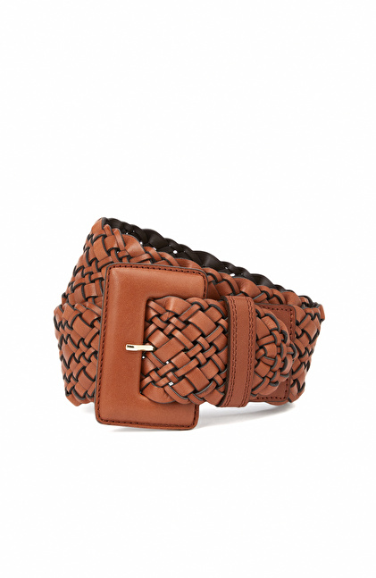 Kahverengi Kadın Örgü Deri Kemer