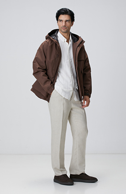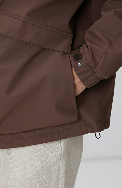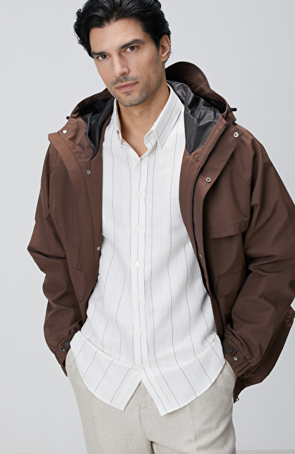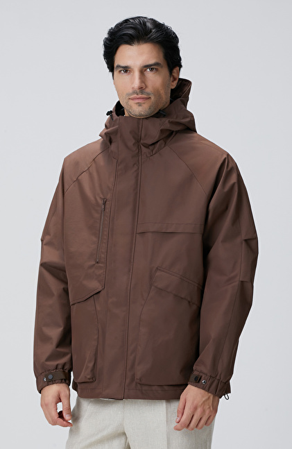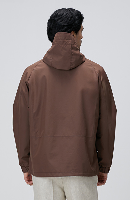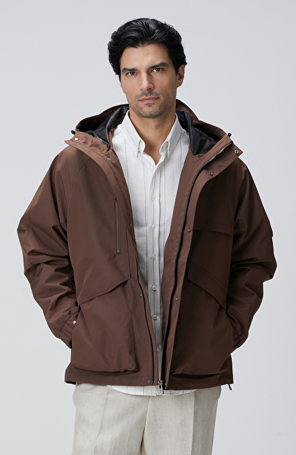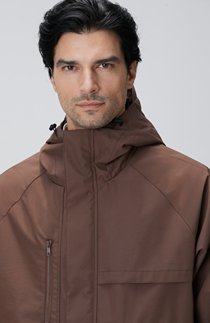 Kahverengi Kapüşonlu İnce Mont