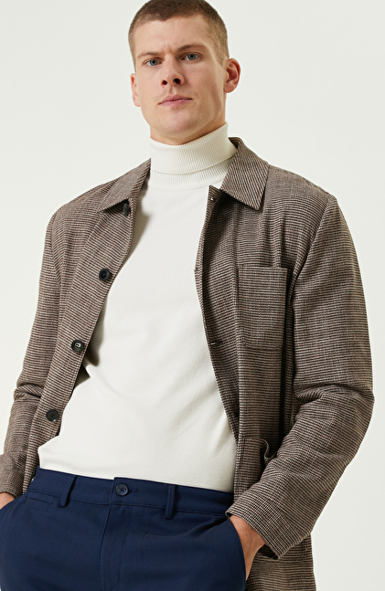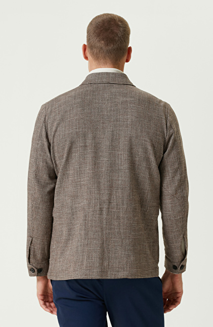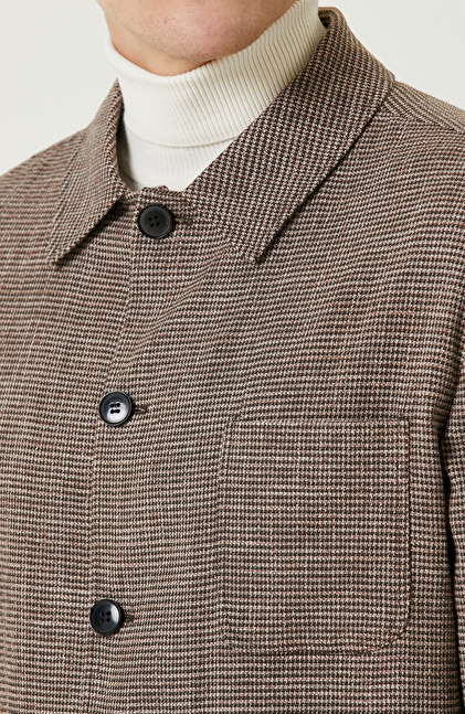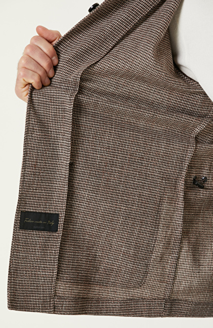 Kahverengi Kazayağı Desenli Comfort Ceket