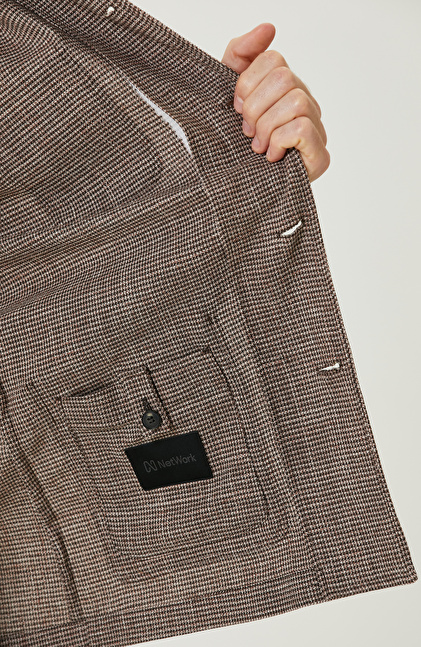 NETWORK Smart Casual Kahverengi Kazayağı Desenli Comfort Ceket