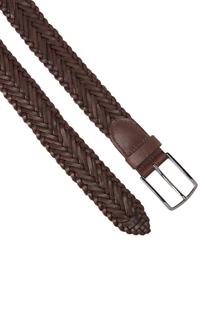 Tükenmek Üzere Kahverengi Örgülü Erkek Deri Kemer