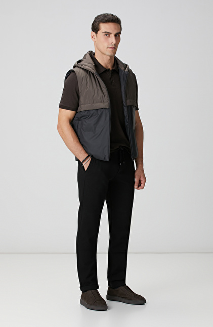 Kahverengi Polo Yaka Düğmeli Jakarlı T-shirt