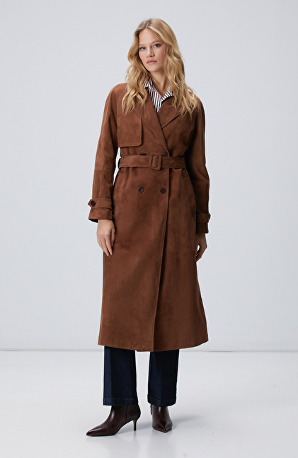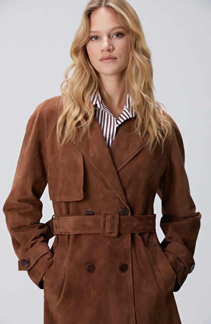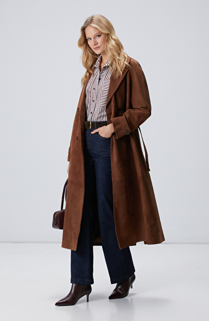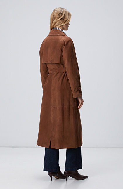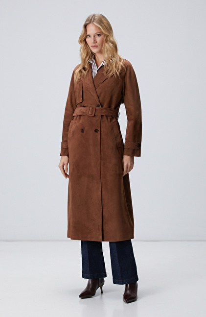 Kahverengi Süet Deri Pardösü