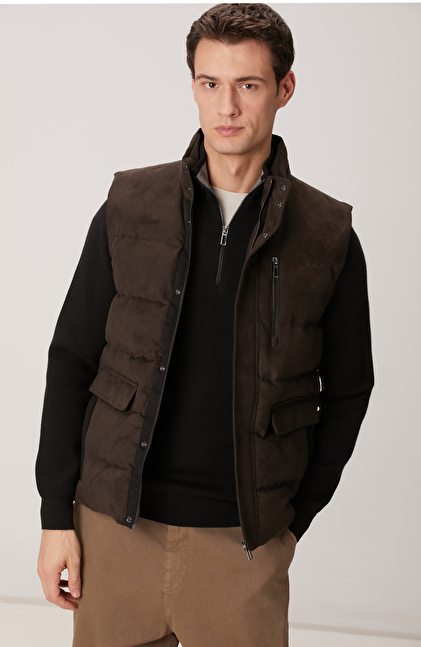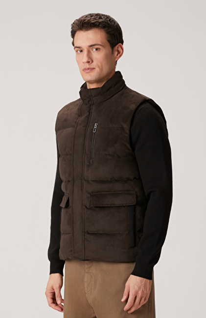 Kahverengi Süet Görünümlü Casual Yelek
