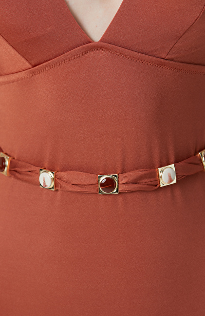 Kahverengi Taşlı Kemer Detaylı Mayo