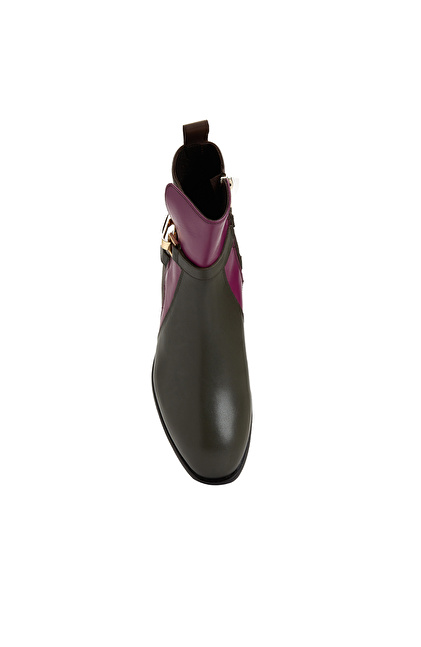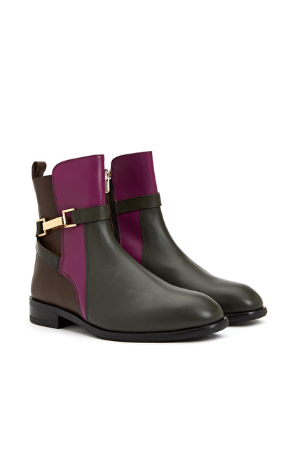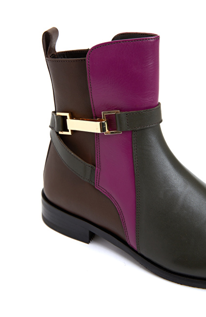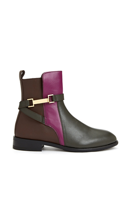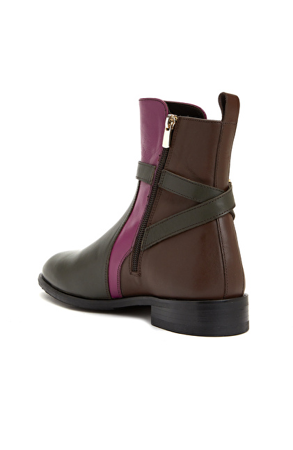 Kahverengi Toka Detaylı Kadın Deri Bot