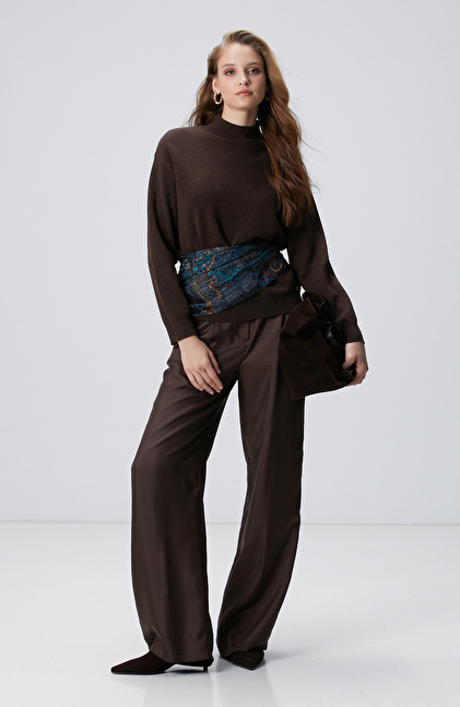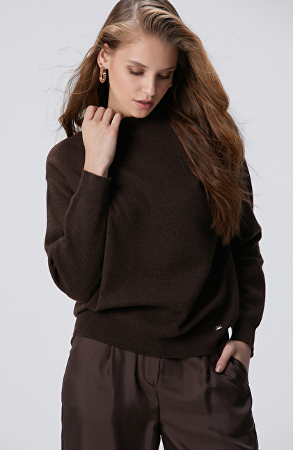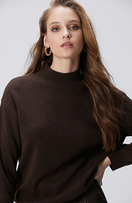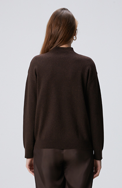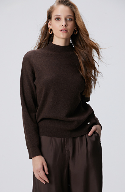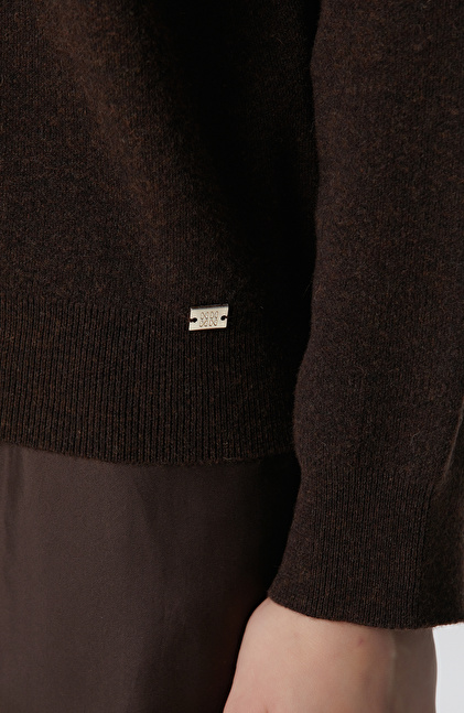Kahverengi Yün Karışımlı Triko Kazak