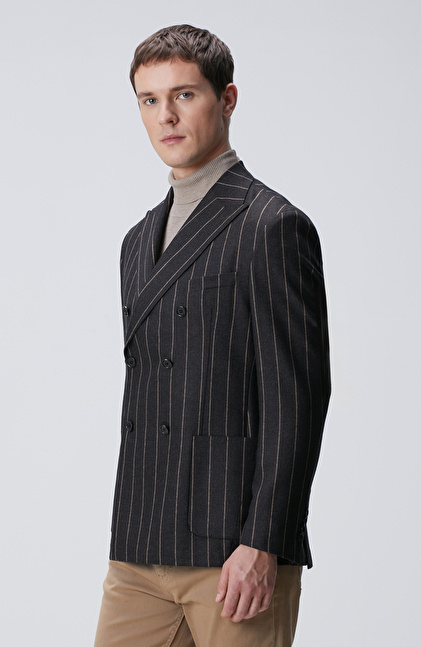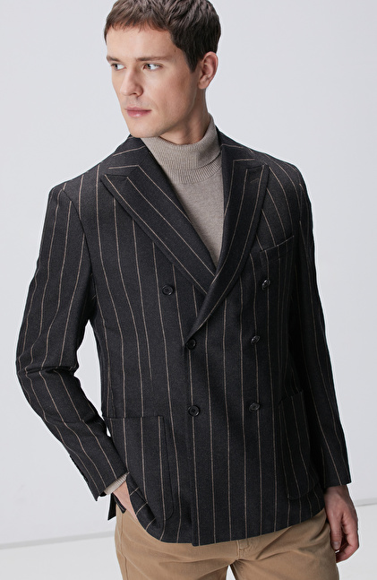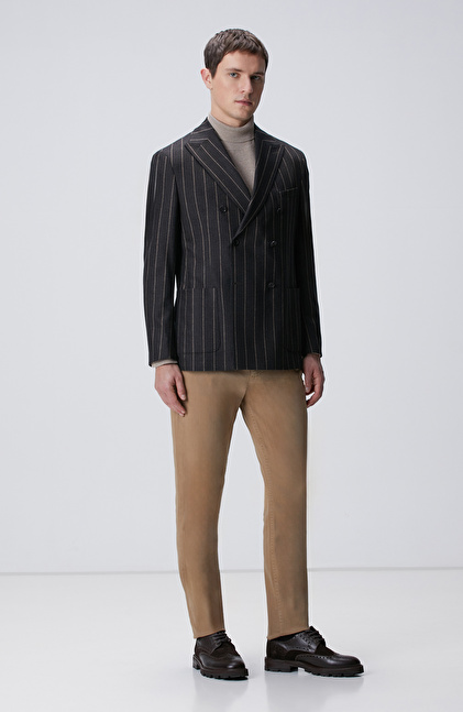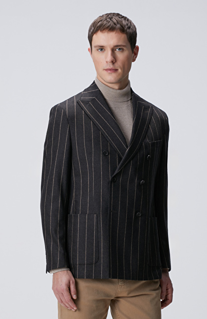 Kahverengi Yün Kaşmir Karışımlı Ceket